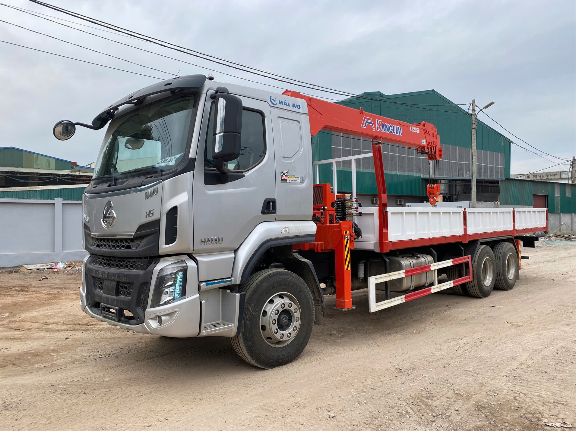 Xe tải Chenglong 3 chân H5 2 cầu thật gắn cẩu Kanglim Hàn Quốc model KS2056 8 tấn 6 đốt thiết kế mới với ưu thế tải cao thùng hàng dài cần cẩu nhập khẩu chính hãng Hàn Quốc. Tel 0964229668